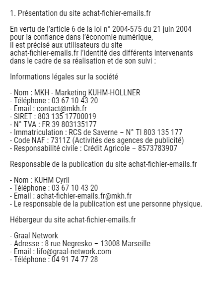 Le site https://achat-fichier-emails.fr/ a pour objet de fournir une information généraliste sur l’achat de fichier email.